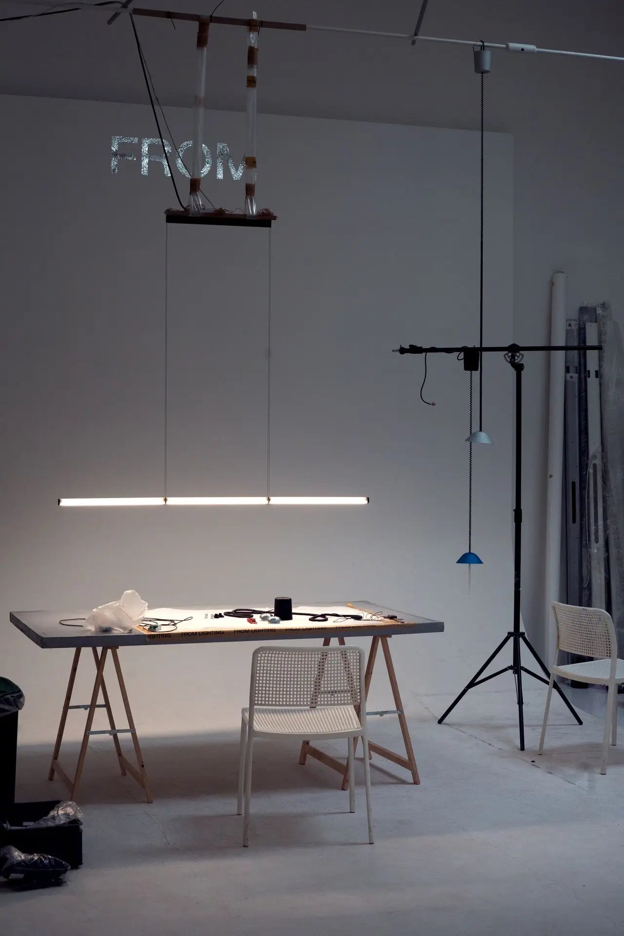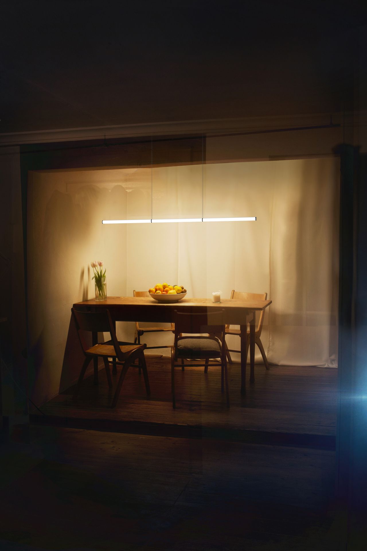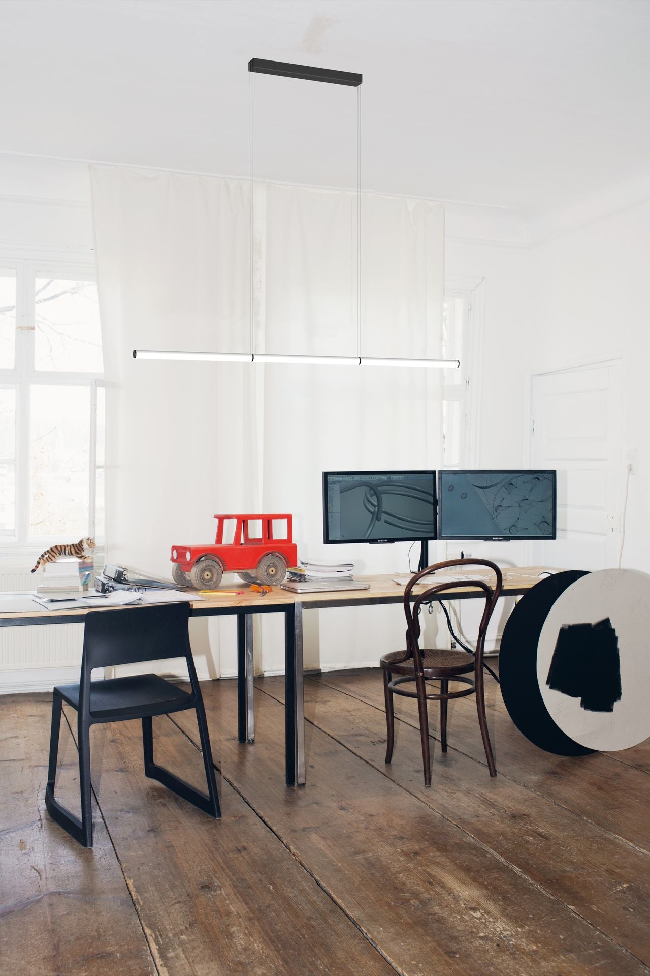 Satellit ist eine vielseitige minimalistische Deckenleuchte. Der Leuchtstab aus Glas kann um 360° Grad gedreht werden, sodass die Beleuchtung den wechselnden Bedürfnissen und der gewünschten Atmosphäre angepasst werden kann. Durch Drehen des Leuchtstabs nach unten kann das Licht direkt auf einen Tisch gerichtet werden. Durch Drehen nach oben oder zur Seite kann mit der indirekten Beleuchtung an die Wand oder Decke eine intimere Atmosphäre geschaffen werden.